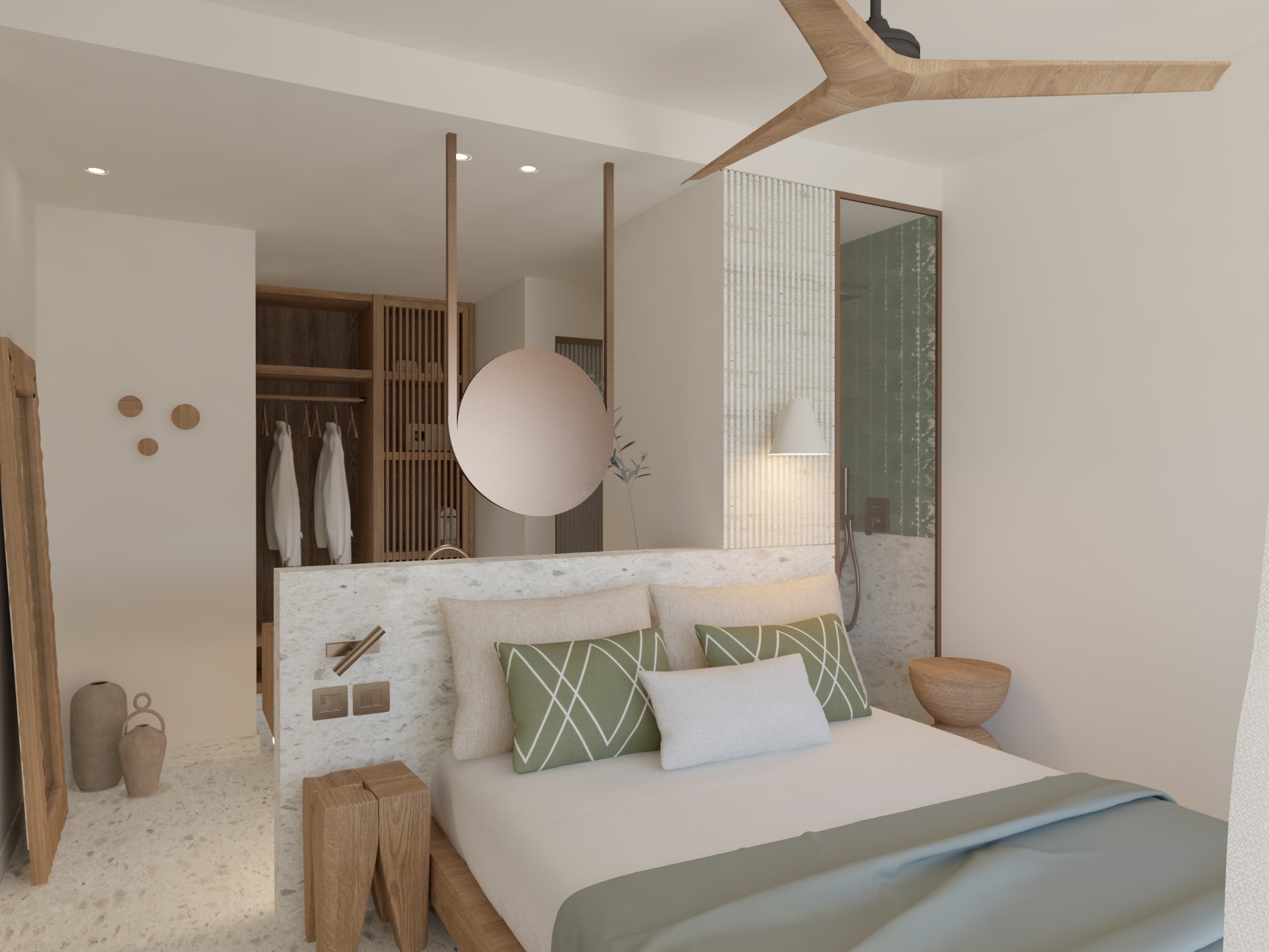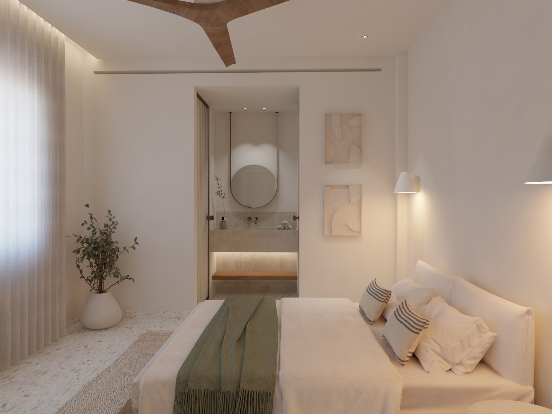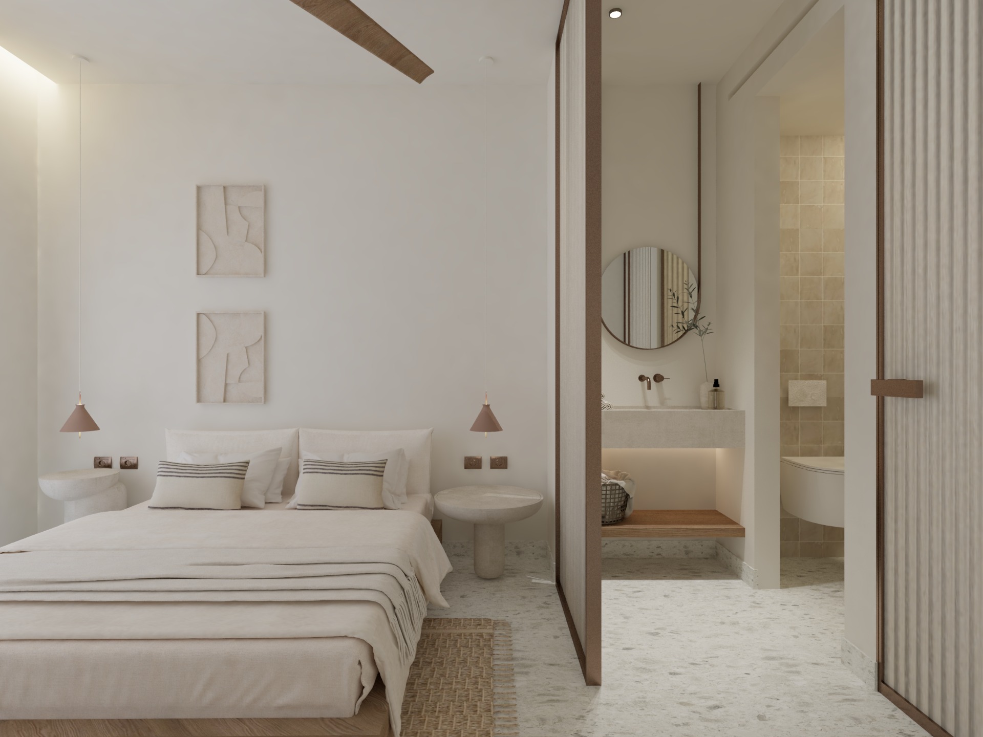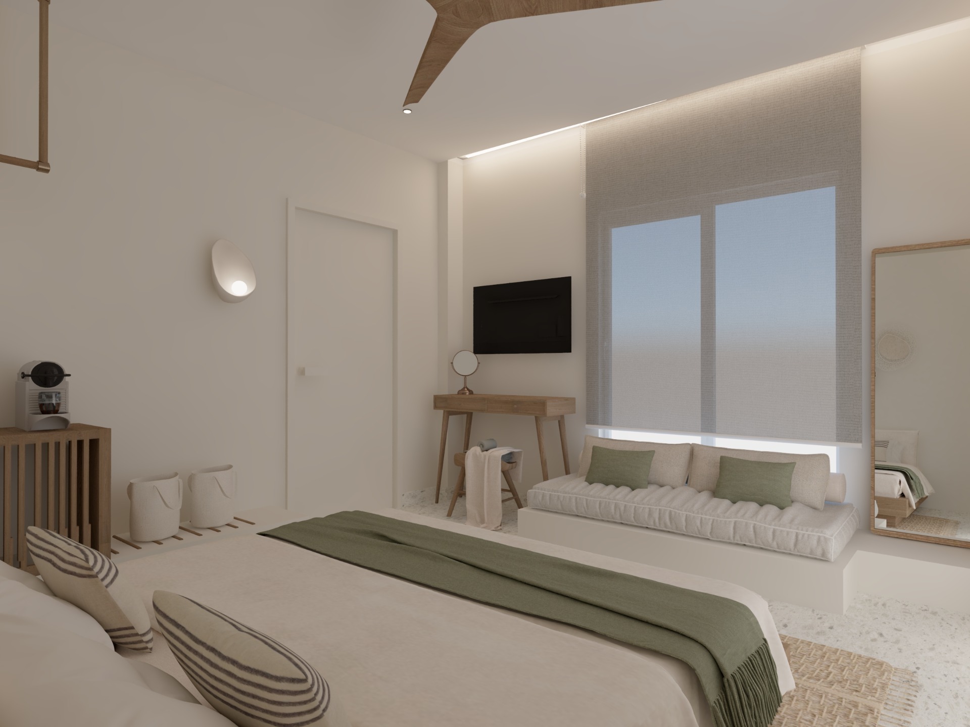Thoughtfully designed to offer a peaceful escape, this room invites you to relax and unwind in an atmosphere of tranquility and balance. The minimalist aesthetic, combined with natural materials and calming tones, creates a perfect setting for rest and rejuvenation. Enhancing your stay are carefully selected amenities: à la carte breakfast served in your room or in the garden, a beach set for your seaside moments, eco-friendly bath products, and daily housekeeping — all curated to offer comfort, authenticity, and refined simplicity.